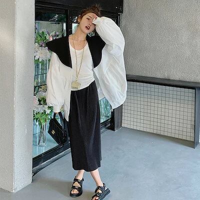 Tシャツ 韓国 カットソー シフォンブラウス 夏 半袖 ロンT トップス 綿 スリット イレギュラー デザイン シャツ アンダーウェア 体型カバー チュニック リネン素材 半袖