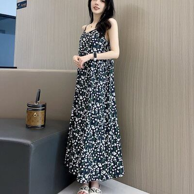 夏服 ワンピース キャミワンピース 韓国 花柄 ワンピース ノースリーブ 体型カバー 大きいサイズ ゆったり 着やせ インナー 気質 海? 百掛け Tシャツ