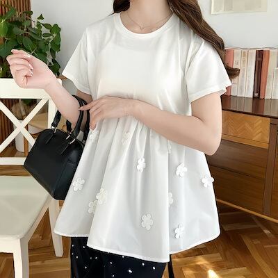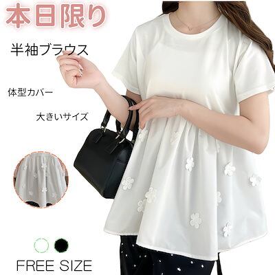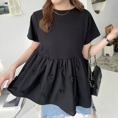 Tシャツ 韓国 2025新作 今年も人気!半袖 体型カバー 刺繍 ブラウス 半袖シャツ 大きいサイズ ゆったり 花柄 着やせ
