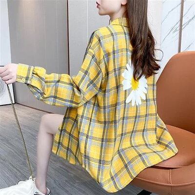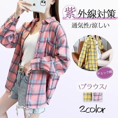 韓国 長袖 ブラウス シアーシャツシフォンブラウス チェック 体型カバー ブラウス プラウス 通気性涼 シャツ カーディガン 韓国 大きいサイズ 日焼け止め UV