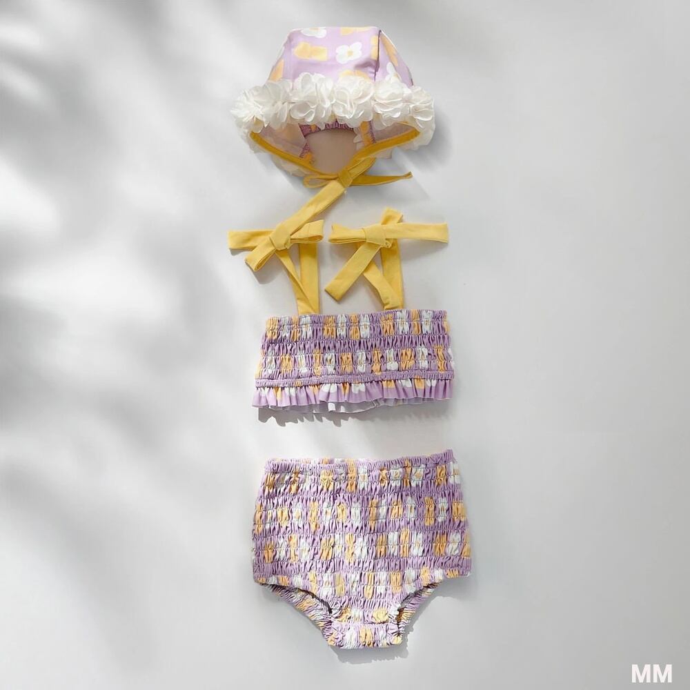 女の赤ちゃんのためのワンピース水着セット,フラワーフード付き水着,新生児ビキニ,トレンディ,韓国版,3個 韓国系水着 セパレート水着 ワンピース水着 T240626154808_01