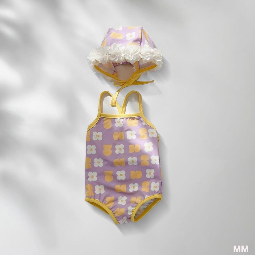 女の赤ちゃんのためのワンピース水着セット,フラワーフード付き水着,新生児ビキニ,トレンディ,韓国版,3個 韓国系水着 セパレート水着 ワンピース水着 T240626154808_05