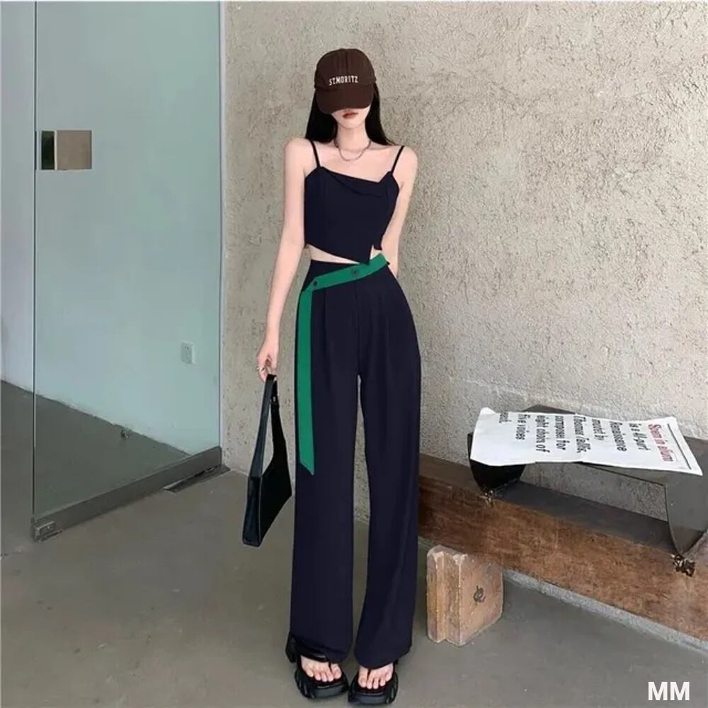 女性のためのエレガントなロングパンツとストラップレスドレス,ルーズフィット,ハイウエスト,カジュアル,春秋ファッション 韓国系水着 セパレート水着 ワンピース水着 T240626154818_03