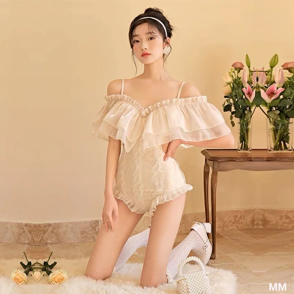 レースフリルワンピース水着女性用、女性用かわいいスモック、ハイウエスト、スリム韓国スタイル水着、2024 韓国系水着 セパレート水着 ワンピース水着 T240626155002_01