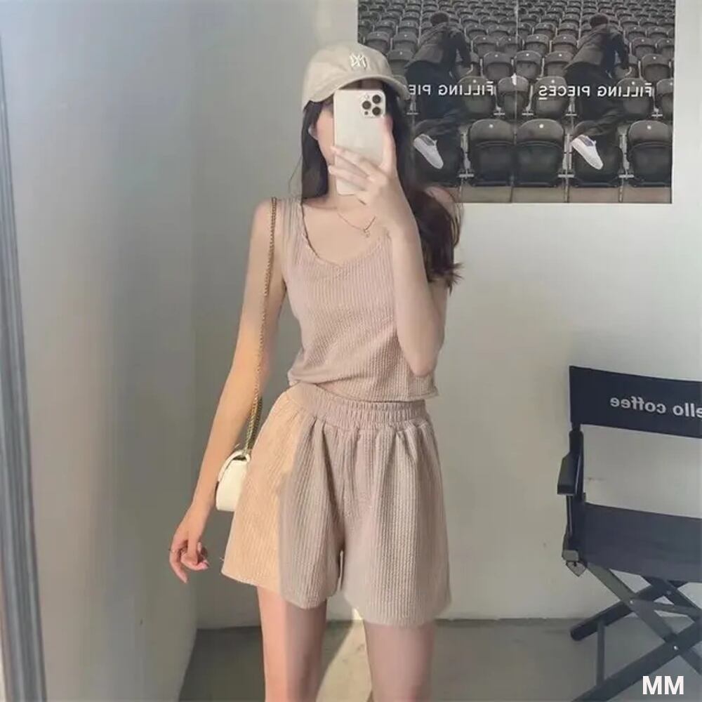 女性用ポリエステルバギーショーツ,快適なハイウエスト生地,カジュアル,韓国スタイル,夏のファッション,2個セット 韓国系水着 セパレート水着 ワンピース水着 T240626155240_03