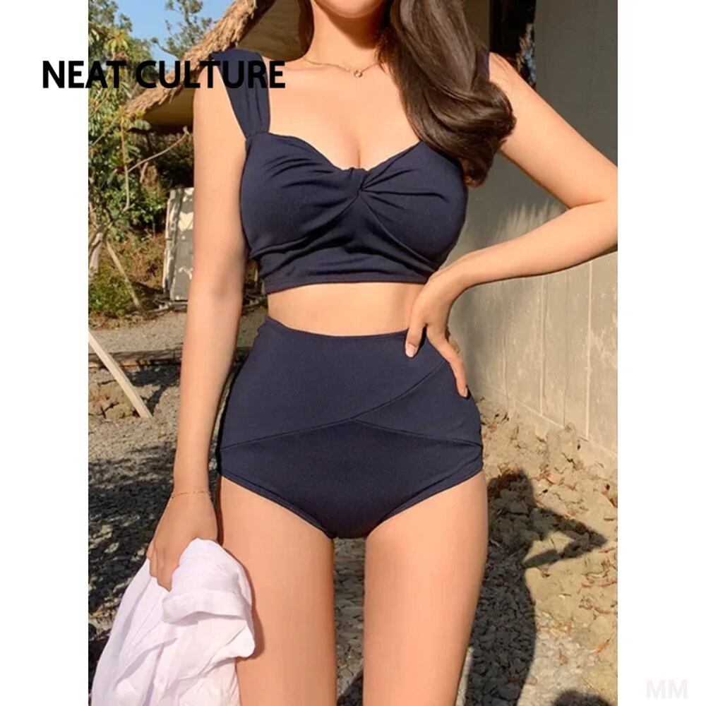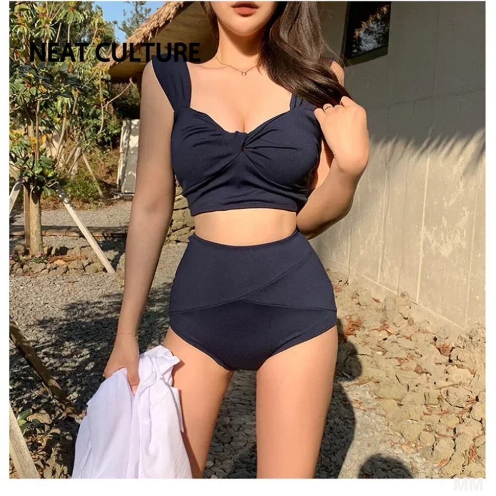 ハイウエストトライアングルビキニセット,女性用水着,韓国水着,無地,ファッショナブル,2ピース,2023 韓国系水着 セパレート水着 ワンピース水着 T240626155453_02