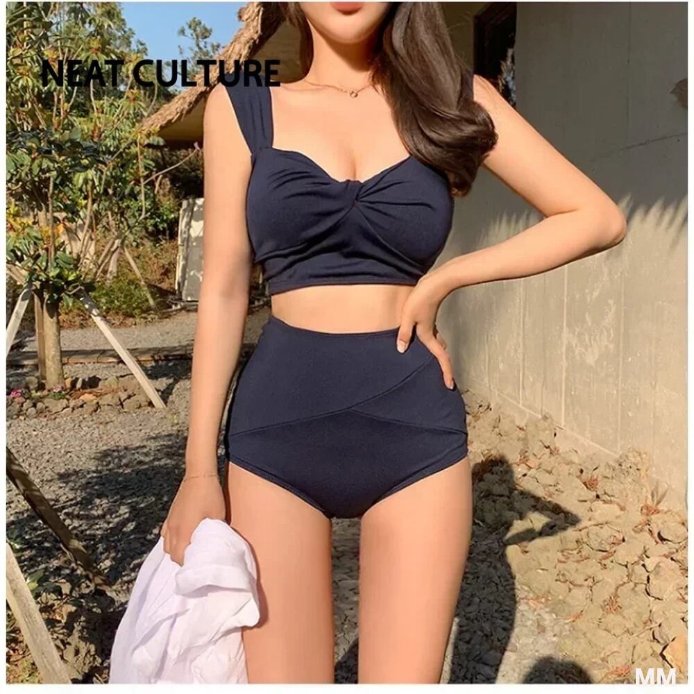 ハイウエストトライアングルビキニセット,女性用水着,韓国水着,無地,ファッショナブル,2ピース,2023 韓国系水着 セパレート水着 ワンピース水着 T240626155551_02