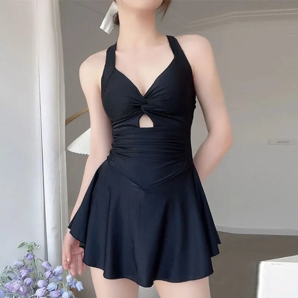 ワンピースしわクロス水着,黒とグレーのビキニ,パッド入り水着,セクシー,韓国のファッション,バジン水着 韓国系水着 セパレート水着 ワンピース水着 T240626155556_02