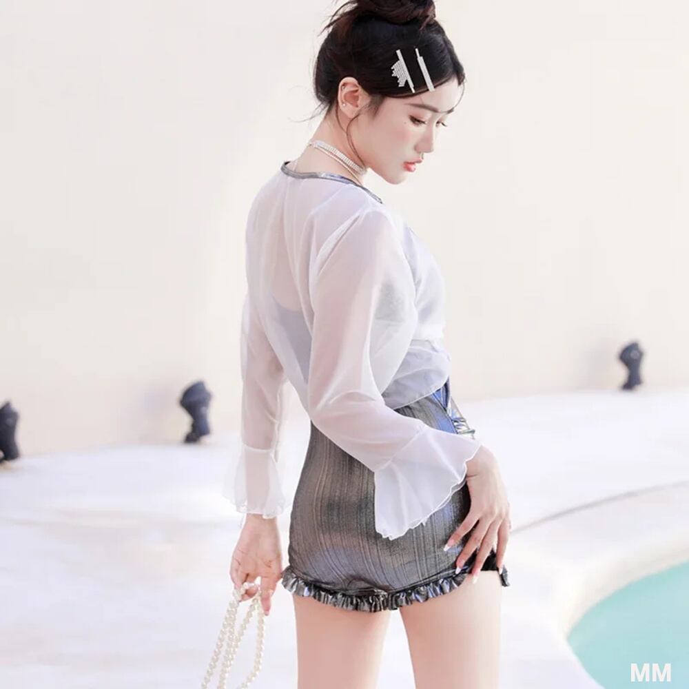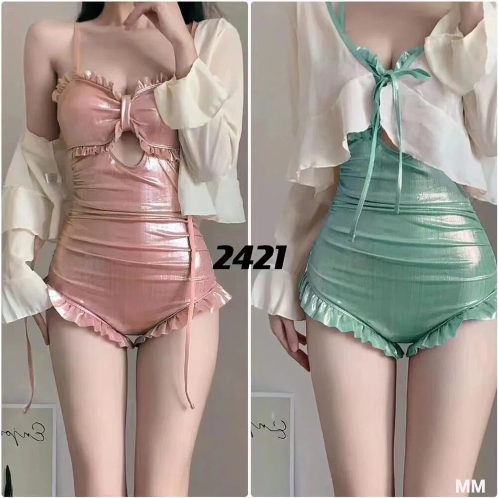 女性用ワンピースビーチ水着,フリル,スリム,ハイウエスト,光沢,きらめく,韓国スタイル,2022 韓国系水着 セパレート水着 ワンピース水着 T240626160018_04