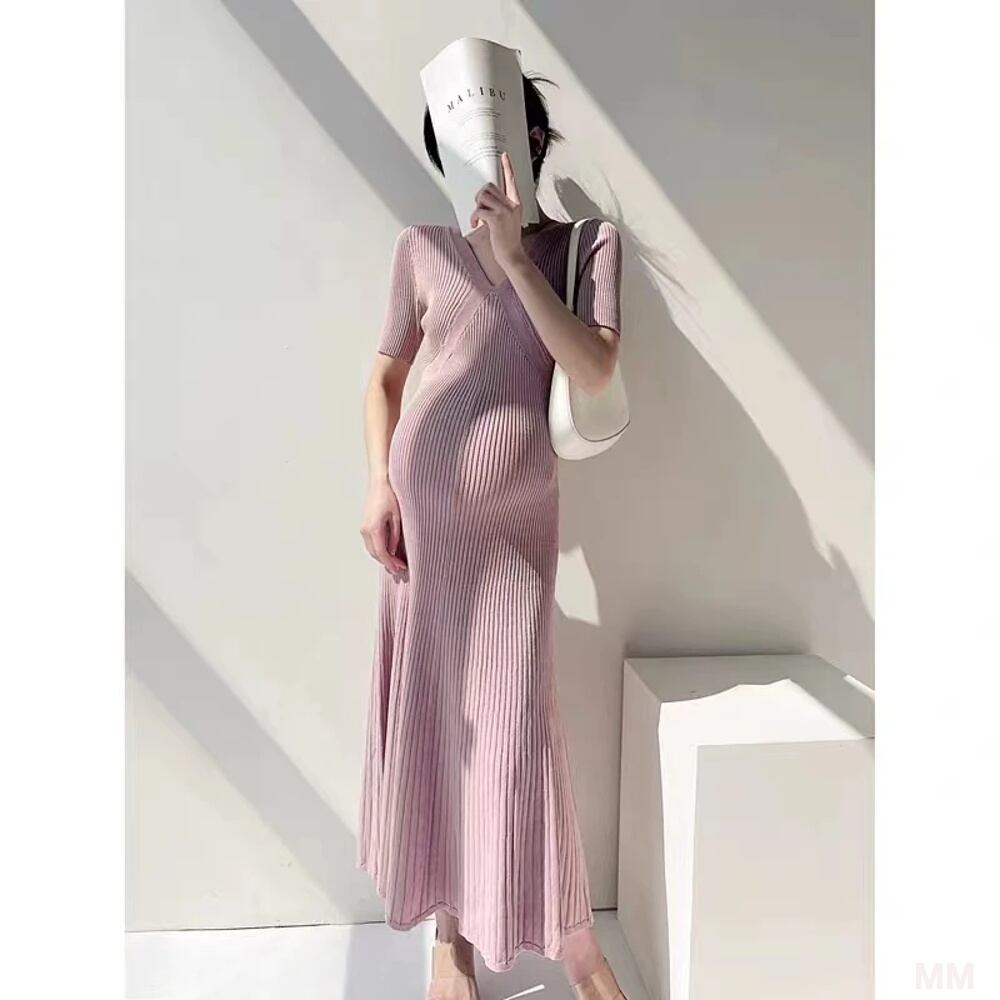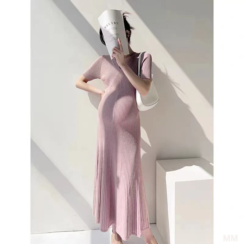 韓国スタイルのマタニティニットドレス,マタニティウェア,無地,半袖,Vネック,ハイウエスト,女性用 韓国系水着 セパレート水着 ワンピース水着 T240626160128_03