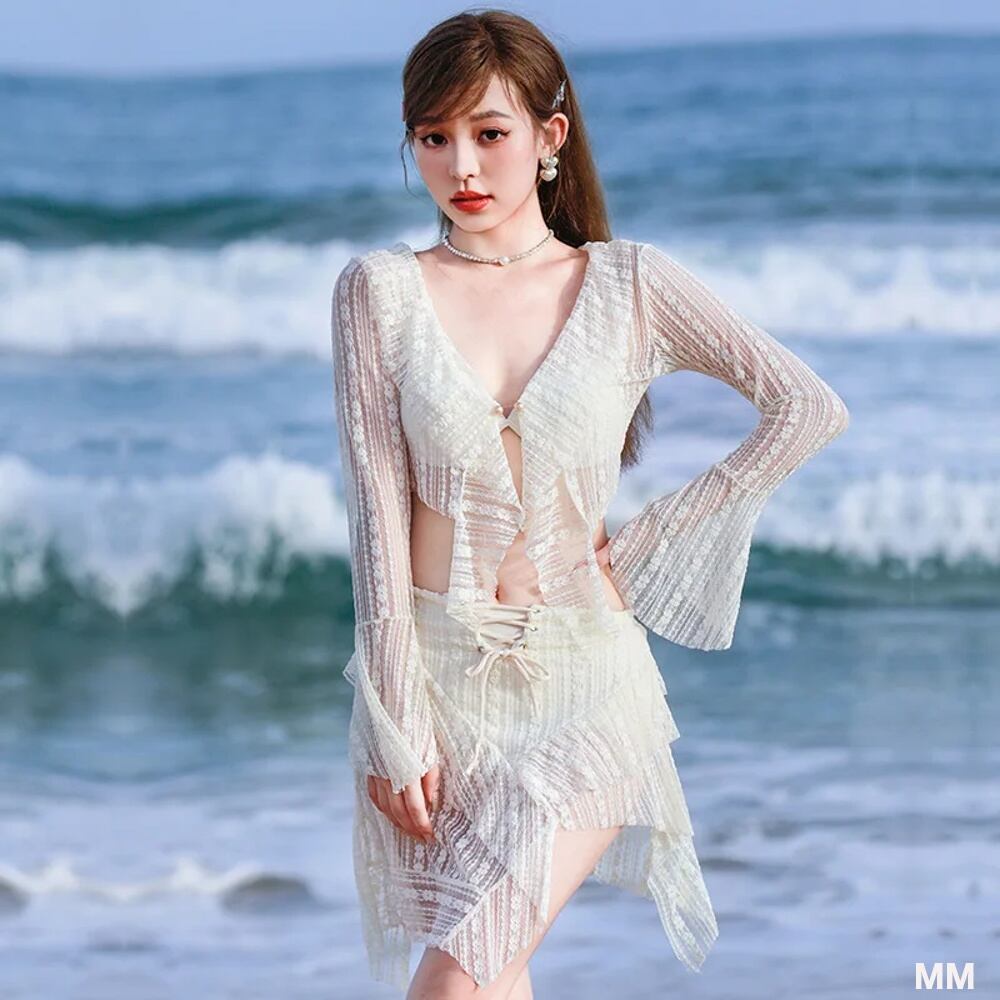 女性用カバーアップ付きビキニ,ビーチとプール用のセクシーな水着,日焼け止め,痩身水着,韓国のファッション,3個2024 韓国系水着 セパレート水着 ワンピース水着 T240626160304_03