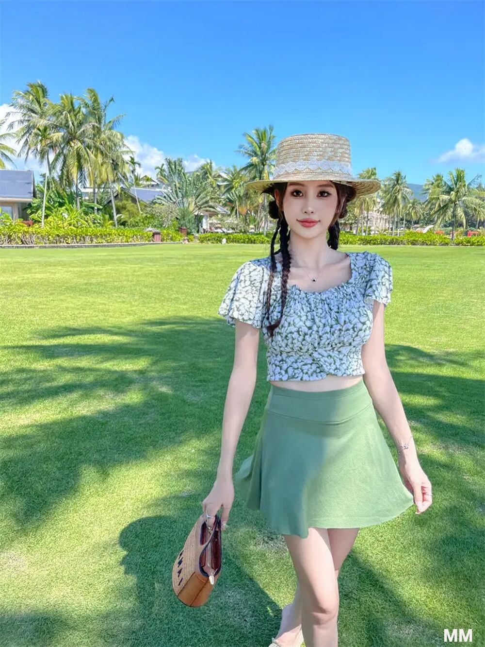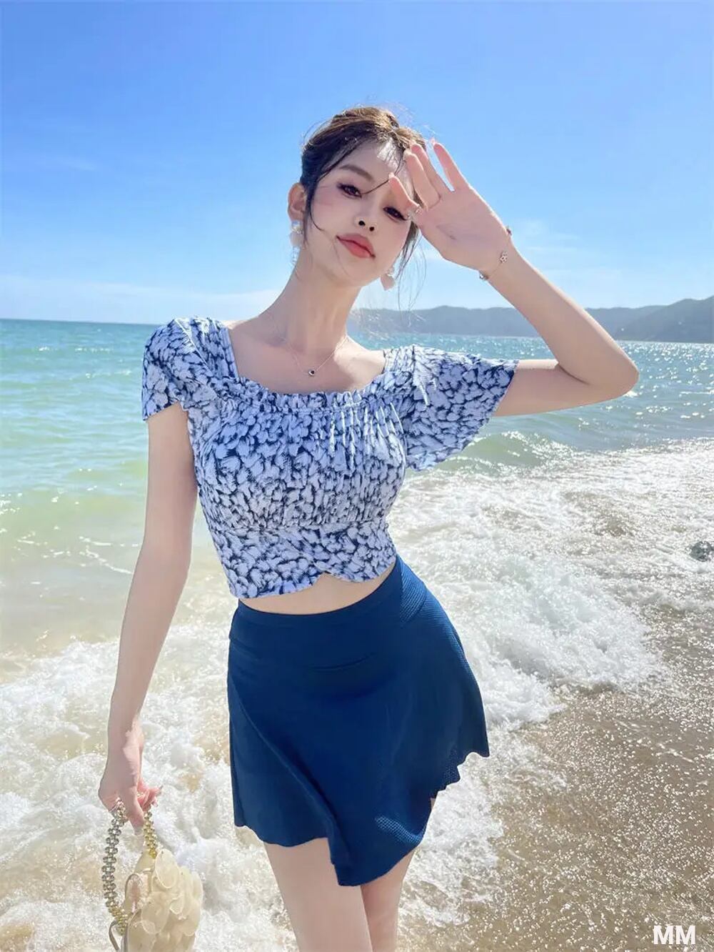 ツーピースの花柄プリント水着,パッド入りビキニトップ,韓国のファッション,半袖,セクシー 韓国系水着 セパレート水着 ワンピース水着 T240626160308_02