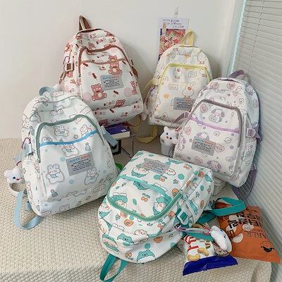 今すぐ欲しい!バックパック バッグ通学リュック旅行バッグ韓国 パックリュック レディーストラベルポーチスタイリッシュな落書きプリントの大容量ショルダーバッグ orange