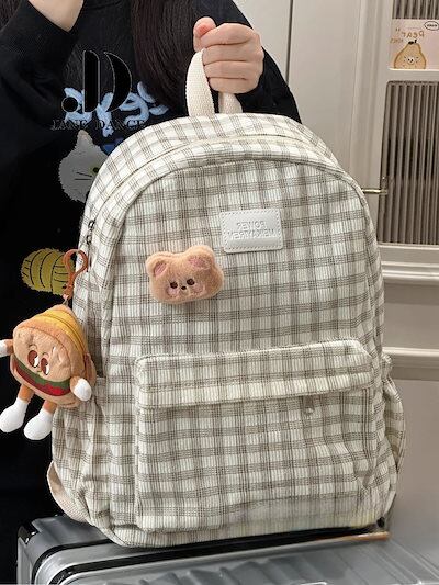 キャンパスレトロチェック柄ショルダーバッグ 百式バックパックリュック リュック 大容量 リュックサック 大容量 リュック リュック レディース 韓国 リュック 旅行バッグ メカ割