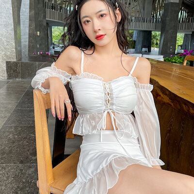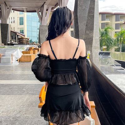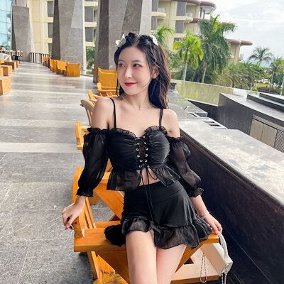 2024年夏モデルの新しい女性用水着保守的でお腹を隠しスリムに見せ妖精のような雰囲気を出しながら分割型で運動に適したスタイルで背中を露出した温泉に適したビキニスタイルの水着です