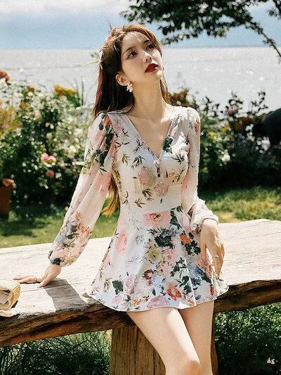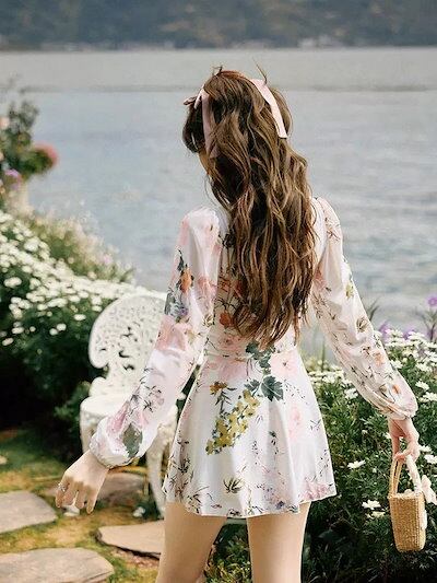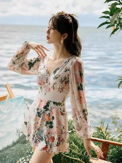韓国ファッシ2024スリム見え水着 レディース 水着 ワンピース型 オールマッチ カップ付きインナー