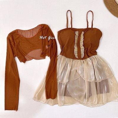 水着 Swimwear 2025 人気 ワンピース水着スカート風腹隠しスリム2枚セット温泉水着 韓国ファッション 水着 涼しく楽ちんセットアップ メガ割