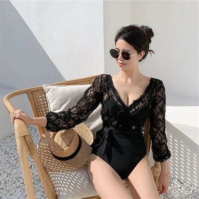 2024新作水着 新作 セパレート 薄手カップ ヒップアップ 長袖 ハイウエスト スリム見え 着痩せ 可愛い セクシー ワンピース型 韓国ファッション