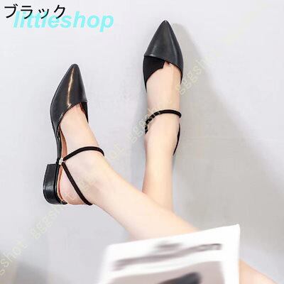 スタイルアップ!ヒールパンプス ローヒール パンプス サンダル レディース 靴 Vカット ポインテッドトゥ 美脚 おしゃれ きれいめ ミュール チャンキーヒール 3センチ サボサンダル orange