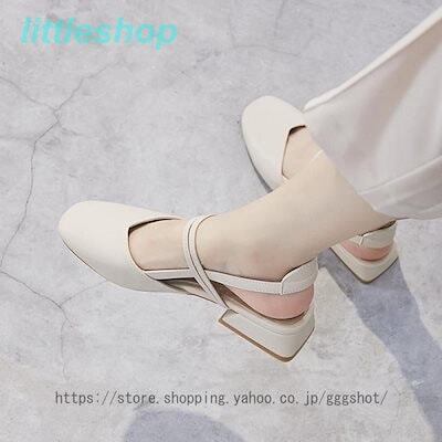 スタイルアップ!ヒールパンプス パンプス レディース ストラップ付き 後付け バックストラップ シンプル スクエアトゥ チャンキーヒール 美脚 カジュアル 履きやすい おしゃれ orange