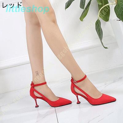 スタイルアップ!ヒールパンプス ストラップパンプス 7センチヒール ポインテッドトゥ ピンヒール レディース high heels 美脚 通勤 結婚式 ハイヒール orange