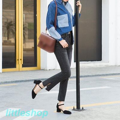 スタイルアップ!ヒールパンプス パンプス ストラップ セパレートパンプス レディース パンプス 太ヒール アンクルストラップ スクエアトゥ パンプス チャンキーヒール ストラップパンプス orange