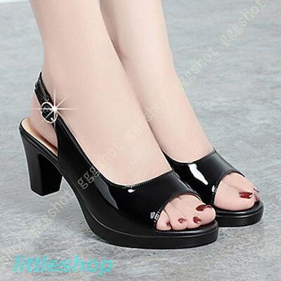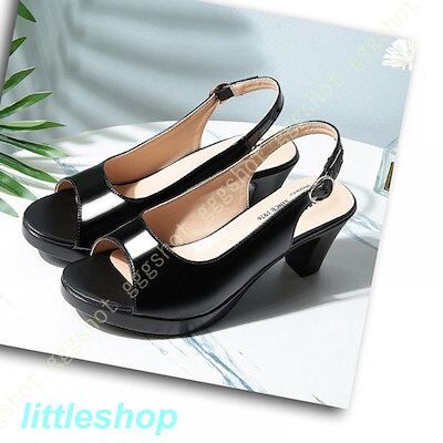 スタイルアップ!ヒールパンプス パンプス サンダル レディース バックストラップ ミドルヒール 走れる 疲れない オープントゥ 太ヒール ヒール5cm パンプス 黒 orange