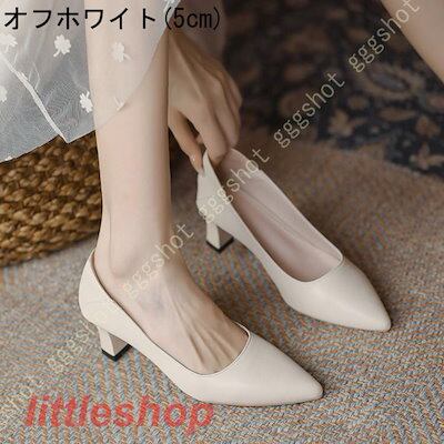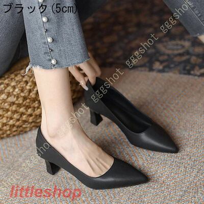 スタイルアップ!ヒールパンプス 結婚式 パンプス 入学式 フォーマル 太ヒール ポインテッドトゥ 黒 スムース調 ハイヒール リクルート バイカラー チャンキーヒール レディース 甲浅 orange