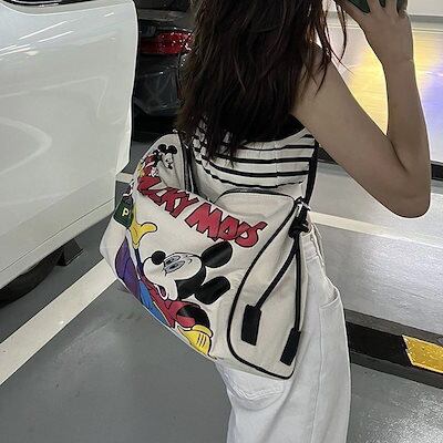 (配送無料)6月おすすめ新品(ミッキー大好き)斜めショルダーバッグ女性大容量スポーツ短距離旅行カバンミッキーキャンバスカバン2025新型女性カバンフィットネスバッグ