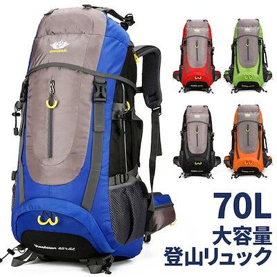 登山バッグ バッグ ザック 大容量リュック 70L バックパック 山登り 男女兼用 避難バッグ リュックサック 撥水リュック 機能性リュック 防災 軽量 出張旅行 スポーツ ハイキング キャンプ トレ