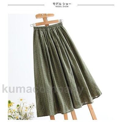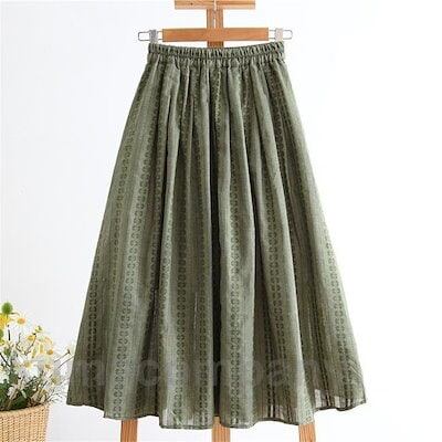 ロングスカート レディース フレアスカート 薄手 スカート ギャザースカート Aライン 夏 ミモレスカート グリーン エスニック柄 ウエストゴム 春