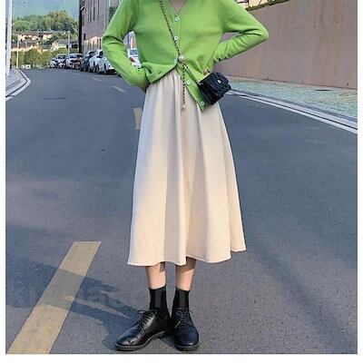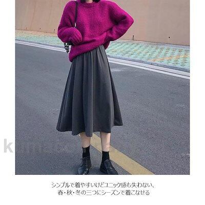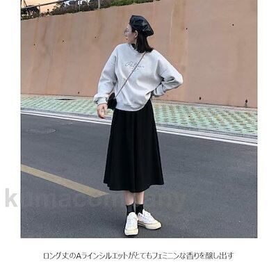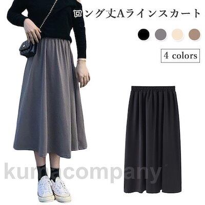 ロングスカート レディース スカート ロング丈 秋 Aラインスカート ウエストゴム ミモレ丈スカート 黒 無地 春 フレアスカート 冬 通勤