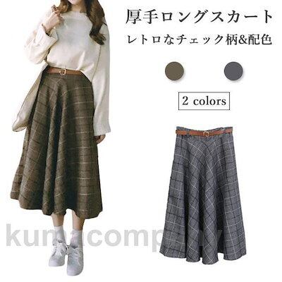 ロングスカート 冬 レディース スカート チェック柄 Aラインスカート ロング丈 厚手 秋 チェック柄スカート ウエストゴム レトロ