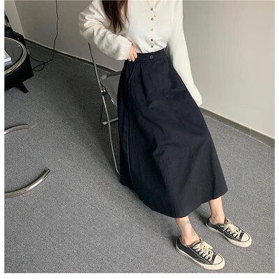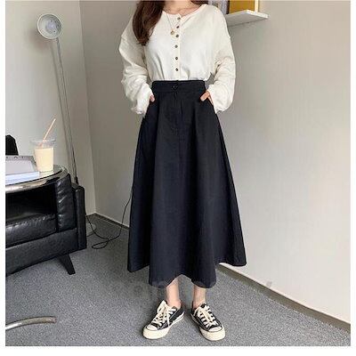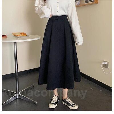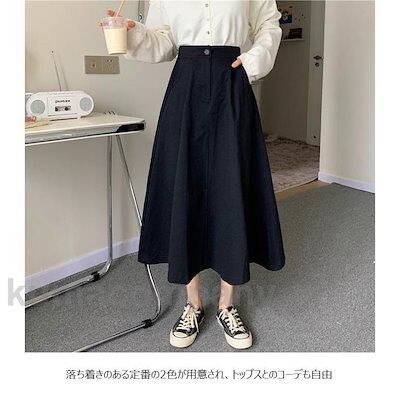 ロングスカート 秋 レディース スカート ウエストゴム マキシ丈スカート 黒 Aラインスカート 無地 ミモレ丈スカート 通勤 レトロ ボトムス