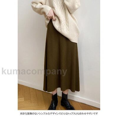 ニットスカート レディース ロングスカート Aライン 保温性 伸縮性 ハイウエスト ウエストゴム 暖かい ゆったり シンプル 春秋冬
