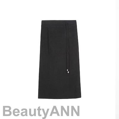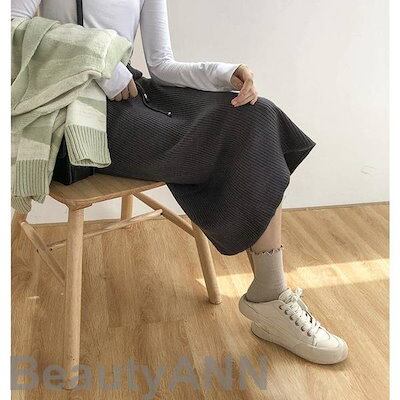 新生活 ニットスカート レディース ボトムス ロングスカート 膝下丈 着痩せ スリット入り 秋冬新作 ブラック グレー ウエストドローストリング プレゼント ギフト