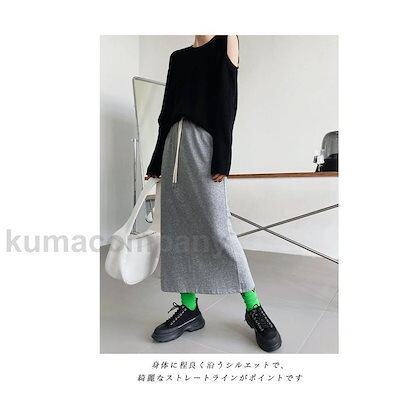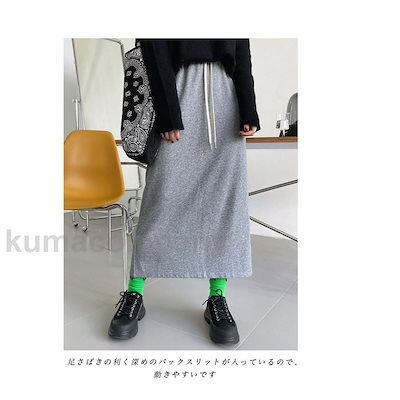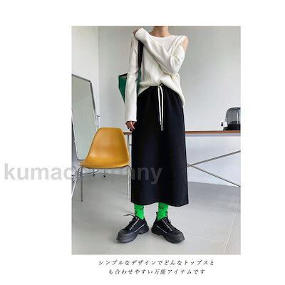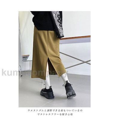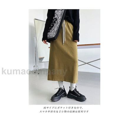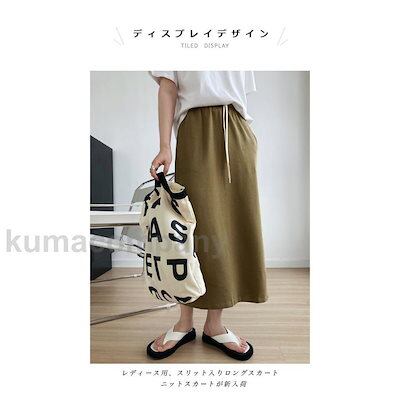 ニットスカート レディース ロングスカート 無地 マキシ丈 Aライン スリット入り ポケット付き ウエストゴム ゆったり 春秋