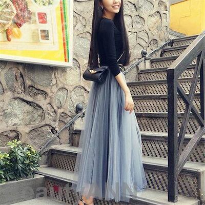 新生活 チュールスカート ロング スカート レディース 裏地あり 秋冬 春夏 フレア 3層チュール 2層チュール ウエストゴム マキシスカート ミモレ丈 パニエ プレゼント ギフト