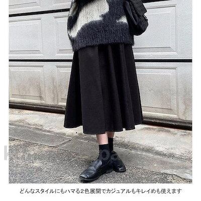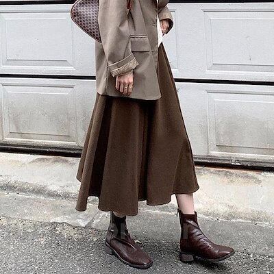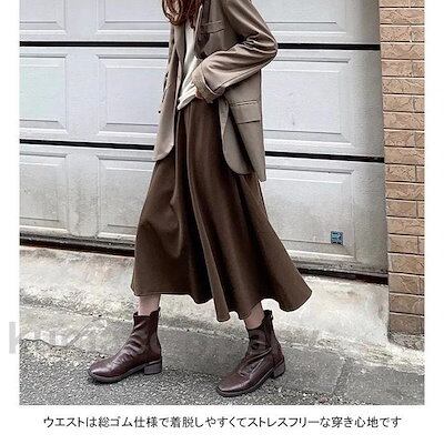 フレアスカート レディース ロングスカート 無地 マキシ丈 Aライン ウエストゴム ハイウエスト ゆったり 美脚 シンプル 春秋