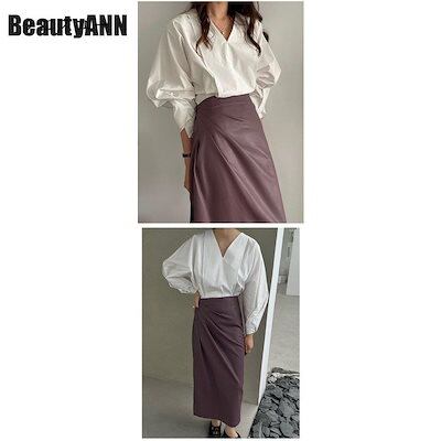 新生活 スカート PUレザースカート レディース ボトムス ロング マキシ丈 Aライン ハイウエストタイトスカート ウエスト タイト レザー 本革 春 秋 夏物 プレゼント ギフト