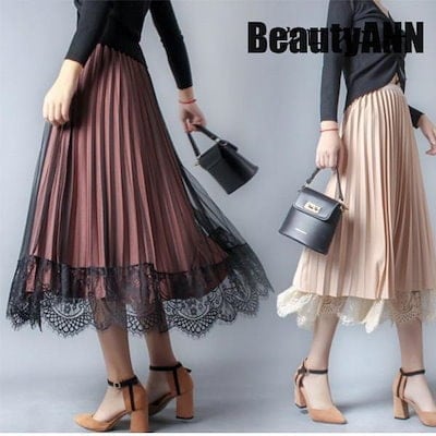 新生活 スカート レディース 秋 プリーツスカート チュールスカート 秋冬 レディース Aライン ウエストゴム ボトムス ロングスカート 両面着 新作 プレゼント ギフト
