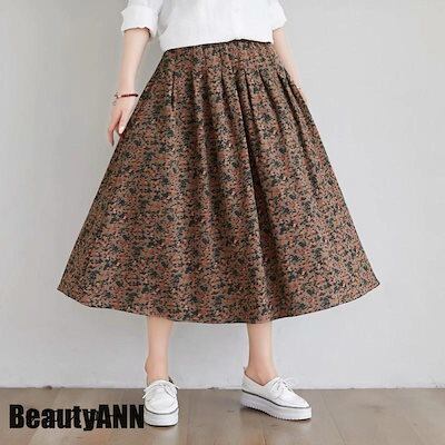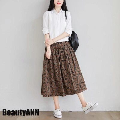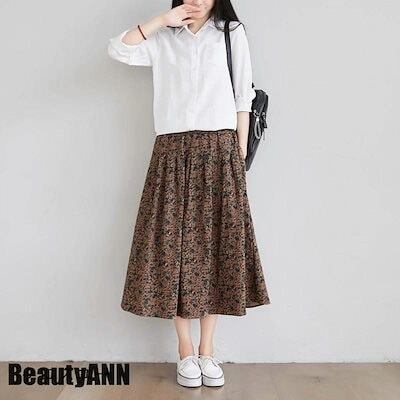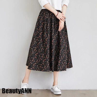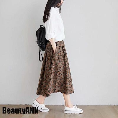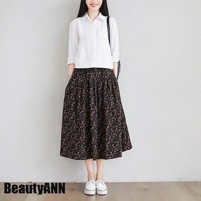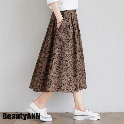 新生活 スカート マキシスカート レディース 花柄 秋 Aライン ロング 体型カバー 綿 コットン マキシ丈 ウエストゴム かわいい ポケット付き 20代 プレゼント ギフト
