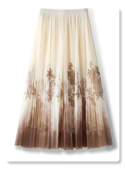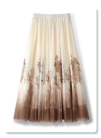 チュールスカート レディース 夏 チャイナ風 墨絵柄 Aライン フレアスカート ロング 透け感 裏地付き ウエストゴム ゆったり 体型カバー サーキュラー 通勤 OL 民族風