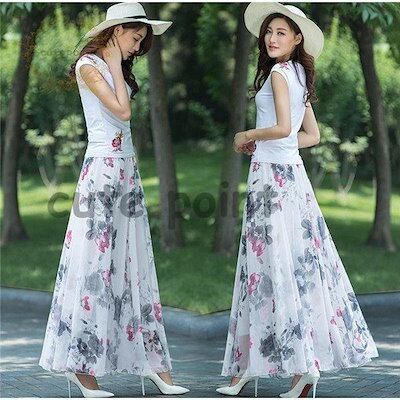 【急速出荷】爆売中 スカート レディース ロングスカート 花柄 シフォンスカート マーメイド Aライン ミモレ丈 ウエストゴム きれいめ 大きいサイズ 体型カバー