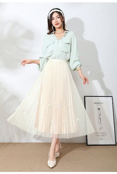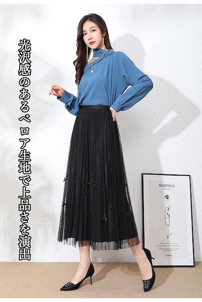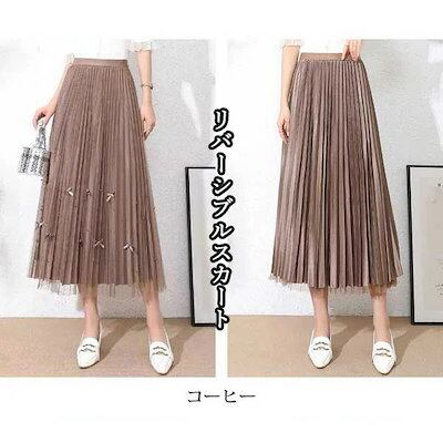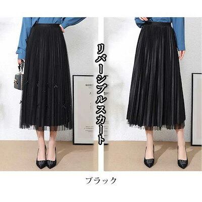 2WAYリバーシブル プリーツスカート ロングスカート スカート レディース チュール ロング丈 ひざ下 ウエストゴム レース パーティー おしゃれ お洒落 ふんわり きれいめ 大人 入学祝い 母の日