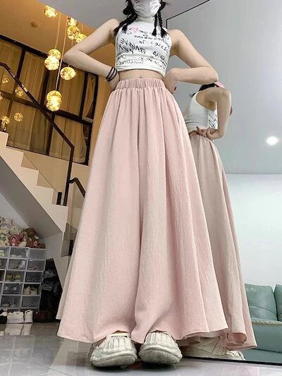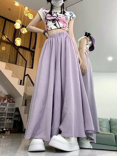 25 パンツ ロング丈 フレア ワイド ウエストゴム ハイウエスト 美脚効果 脚長効果 細見え ゆったり 白 黒 茶色 紫 韓国ファッション レディース かわいい おしゃれ カジュアル お