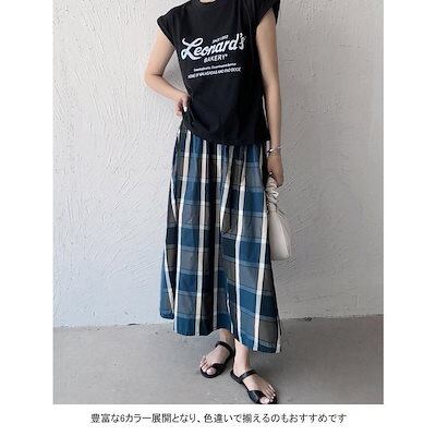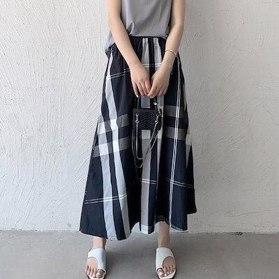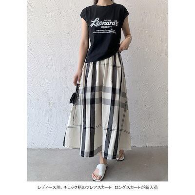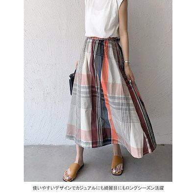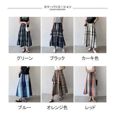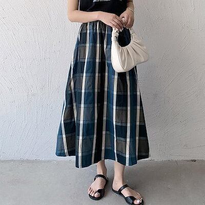 フレアスカート レディース ロングスカート チェック柄 ミモレ丈 Aライン ウエストゴム 柔らかい ゆったり 美脚 シンプル 春夏秋