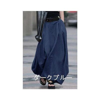 ロングスカート レディース ボトムス 綿麻風 ラウンド裾 無地 マキシ丈 スカート 春夏秋 ウエストバックゴム ハイウエスト ポケット リネンスカート
