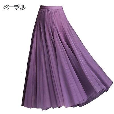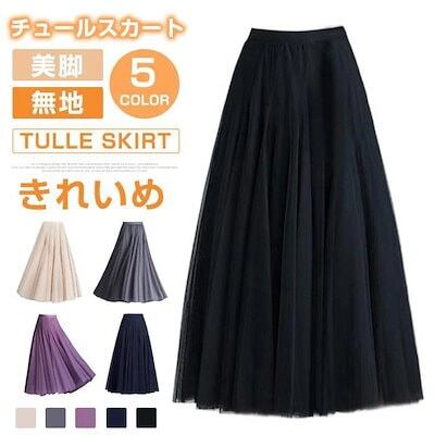 チュールスカート レディース マキシスカート Aライン フレア ウエストゴム ハイウエスト スカート 無地 きれいめ 美シルエット