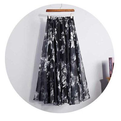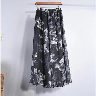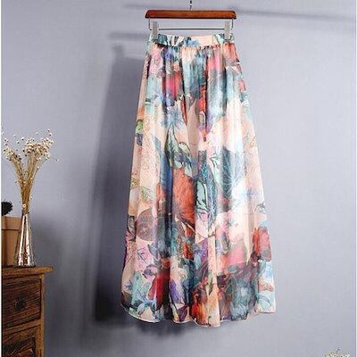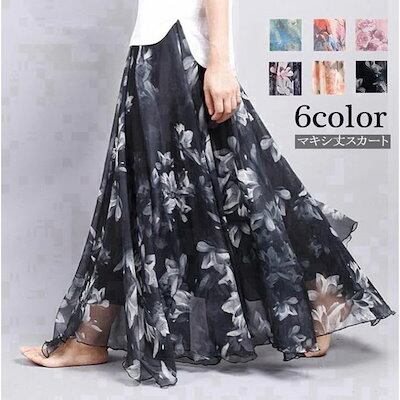 マキシスカート スカート 花柄 フレアスカート レディース マキシ丈 ロングスカート Aライン 着痩せ シフォン ウエストゴム 代引不可